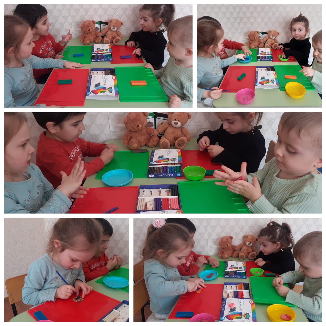 ООД:Художественно-эстетическое развитие (лепка)"Пряники для мишки".Цель:учить скатывать кусочек пластилина в шарик и слегка расплющивать его,соблюдать правила работы с ним.Развивать мелкую моторику пальцев.